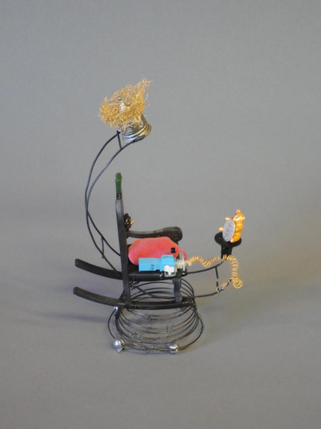 This year in the gallery’s Fringe show, an annual event sparked by the Edinburgh Festival Fringe (often referred to as simply The Fringe) which originated in 1947. It is the world’s largest arts festival, which in 2018 spanned 25 days and featured more than 55,000 performances of 3,548 different shows in over 300 venues. Partners Gallery is featuring a collection of unusual and ingenious chairs handmade or embellished by gallery members, including a Time Machine chair, collaged and painted children’s Adirondack chairs, a needle felted miniature chair with goose and a Temporary Tyrant Tiny Throne. We will have an ongoing silent auction for the chairs which will end at 6:30 during our May 3rd reception. Partners Gallery is committed to hosting invitational and juried exhibitions from and for the community. The auction supports this effort.