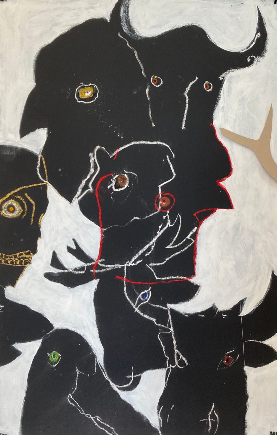 When i am in my studio i wander around all these art materials and ideas pop up, influenced by narrative fiction, or blues, or theatre, or celestial events, or this dark cartoon of life. Then it's my good luck to give those ideas a setting and a cast of characters and a story to play out.